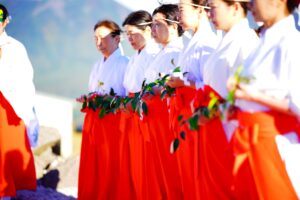 静謐な鈴の音が霧に溶け、しなやかな舞が風とともに空へと昇るたび、参拝者の目には光る涙が映り、「祈りの原点」を思い出す時間となりました。